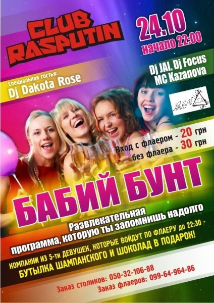 Компании из пяти девушек, которые войдут по флаеру до 22.30 - в подарок бутылка шампанского и шоколад!