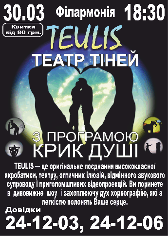 В залі обласної філармонії відбудеться шоу-вистава театру тіней «ТEULIS» з програмою «Крик душі».