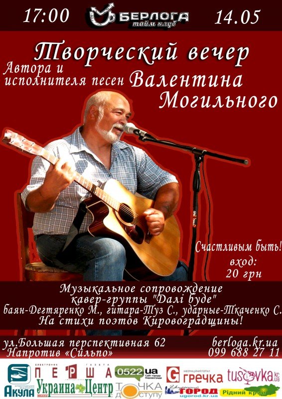 Приглашаем на творческий вечер Валентина Могильного.