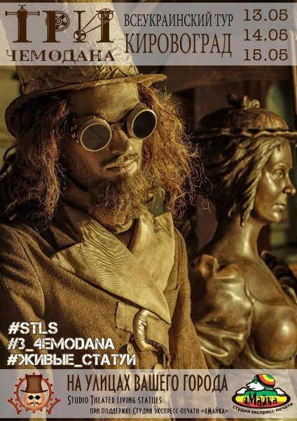 Всеукраинский тур живых скульптур "Три Чемодана" на улицах нашего города.