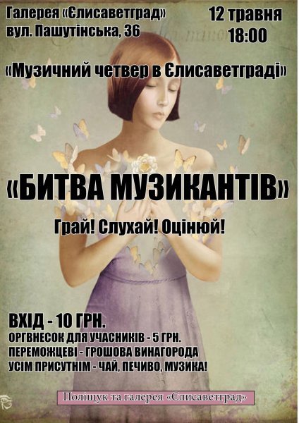 Галерея "Єлісаветград" запрошує на весняну Битву музикантів!