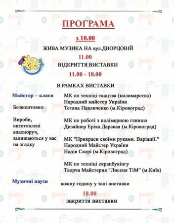У програмі - виставка робіт майстринь, майстер-класи, жива музика.