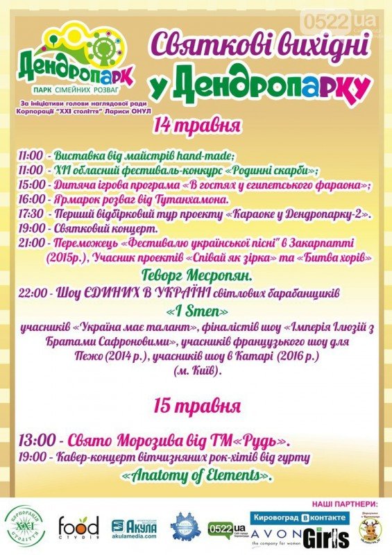 14-15 мая, по инициативе супругов Николая и Ларисы Онул, гостей Дендропарка ожидает яркая шоу-программа!