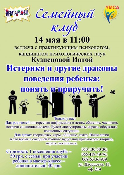 В Семейном клубе состоится встреча с практикующим психологом, кандидатом психологических наук - Кузнецовой Ингой. Тема "Истерики и другие драконы поведения ребенка: понять и приручить!".