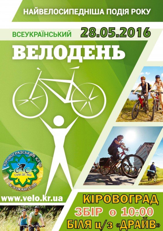 28 травня 2016 року у Кіровограді відбудуться заходи,присвячені святкуванню Дня Велосипедиста!