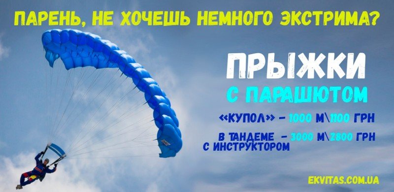 Парашют Д-6 круглый десантный - высота 1000 метров - стоимость поездки 1100грн.