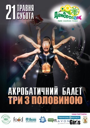 Акробатичний балет "Три з половиною" працює в унікально новому напрямку, який об'єднав у собі артистів різних жанрів. Мікс незвичайних трюків і хореографії, під акомпанемент улюблених музичних творі - це те, що подарує гостям Дендропарку незабутні емоції та ексклюзивність!