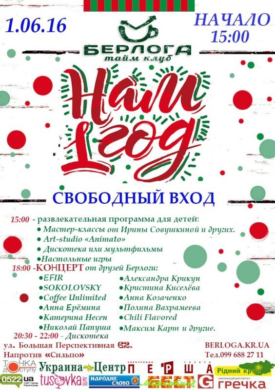 Тайм клуб "Берлога" приглашает всех на годовщину открытия заведения.