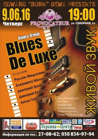 Всем ценителям блюза и просто хорошей музыки рекомендую.. Специальные гости вечера Дмитрий Дорош, Виталий Выштыкайло, Анатолий Анатольевич Дон. Друзья, к великолепной обойме музыкантов согласившихся поджемовать с этим коллективом присоединяется основатель группы "Внутри Zвука", гитарист самой известной в Украине и за ее пределами прогрессив-группы "Карфаген", композитор, и виртуозный исполнитель Максим Величко!