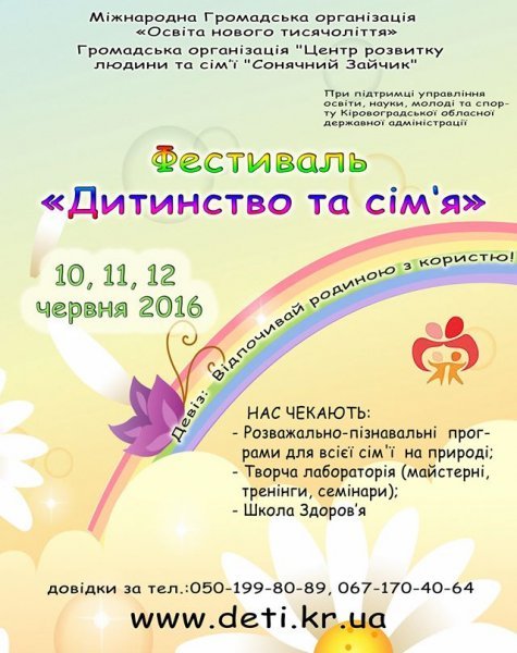 4. Ознайомити батьків з творчими проектами і програмами центрів, організацій-учасників фестивалю, що працюють у м.Кіровограді.