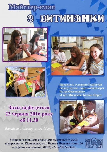 У відділі музею - картинній галереї Петра Оссовського «Світ і Вітчизна» в рамках роботи «Творчої майстерні» буде проведено майстер-клас з витинанки.