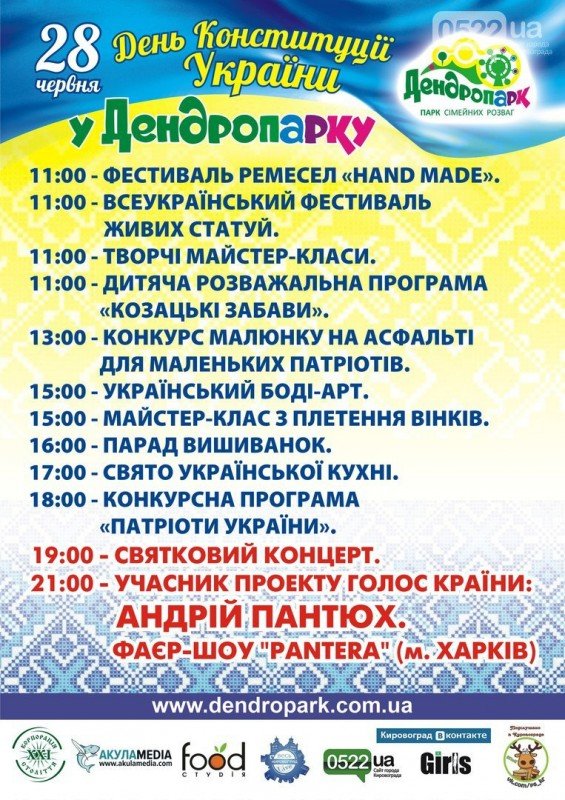 28-го червня в Україні відзначають одне із найважливіших державних свят - День Конституції! Саме тому, в кіровоградському Дендропарку, за ініціативи подружжя Миколи та Лариси Онул, відбудеться його урочисте вшанування!