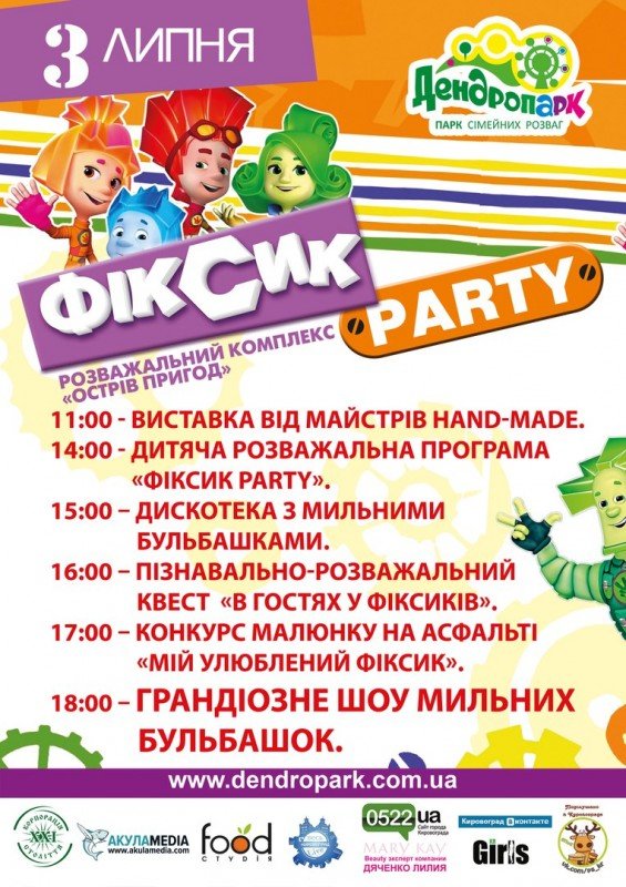 - 17:00 – Конкурс малюнку на асфальті «Мій улюблений Фіксик»