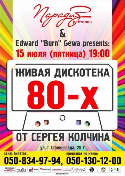 В пятницу 15-го июля - как раз середина лета и пик сезона, - Эдуард Гева предлагает отметить этот день. На улице жара,а внутри уютного зала ресторана "Парадиз" работают кондиционеры, пиво с прохлад, ледяная водка, вкусная пища, радушные хозяева и хорошая компания друзей.
