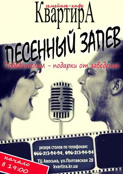 Семейное кафе "Квартира" приглашает голосистых на Песенный запев.