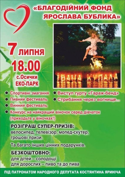 Присутніх будуть пригощати смачними сосисками гриль та морозивом. А на останок, по традиції, усі бажаючи зможуть пострибати через багаття, а дівчата на виданні - віддати свої віночки на розсуд течії. Приєднуйтеся до нашого свята! Буде яскраво, весело та незабутньо!