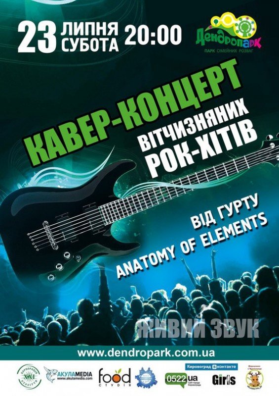 Літо - пора нестримного щастя, прогулянок до світанку та душевної музики! За ініціативи подружжя Миколи та Лариси Онул, 23-го липня, у Дендропарку відбудеться кавер-концерт вітчизняних рок-хітів від гурту "Anatomy of elements"!