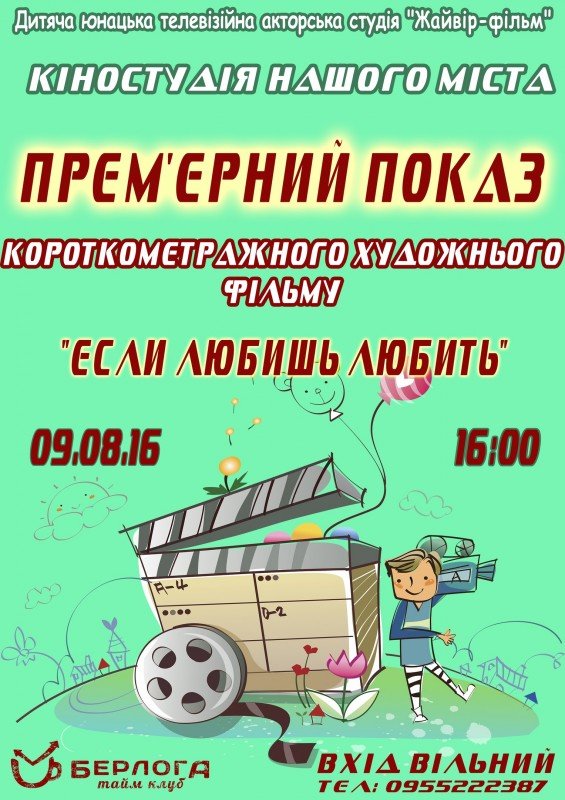 Показ фільму - "Если любишь любить" - кіностудії нашого міста, дитячої юнацької телевізійної акторської студії "Жайвір-фільм".