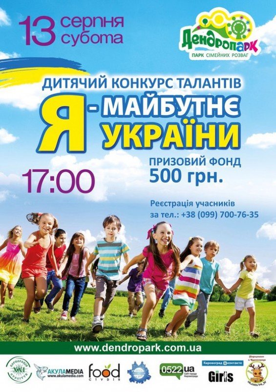 Переконані у винятковому таланті своєї дитини? 13-го серпня Дендропарк запрошує юних та талановитих на дитячий конкурс талантів "Я - майбутнє України". Доведіть, що саме Ваша дитина гідна перемоги у обласному конкурсі!