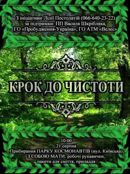 Ті, кому не байдужа чистота в рідному місті, запрошуються на прибирання парку "Космонавтів".