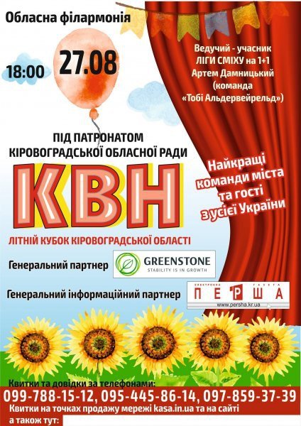Квиточки уже можна купувати на сайті http://kasa.in.ua/litnii-kubok-kirovohradskoi-oblasnoi-lihy-kvn-kropyvnytskyi