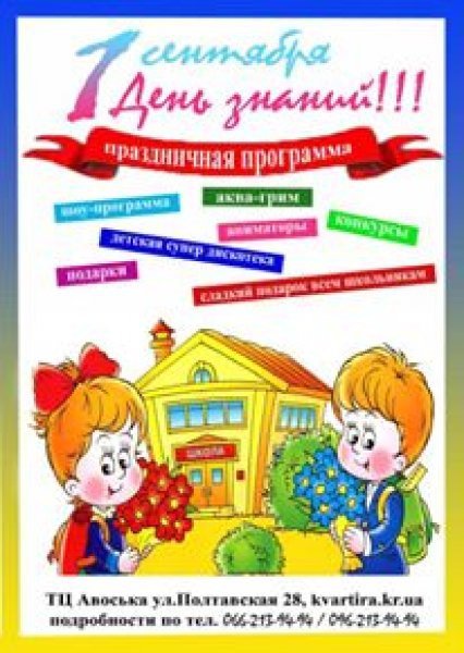Мальчишки и девчонки, а также их родители! День 1-го сентября отметить не хотите ли? Приятная атмосфера и кухня высший класс - веселая программа, все это есть у нас! И если на линейке стоять Вам надоест, на мягкие диваны вы сможете присесть! Хорошая команда и море позитива, отметить этот праздник поможет Вам «Квартира»!