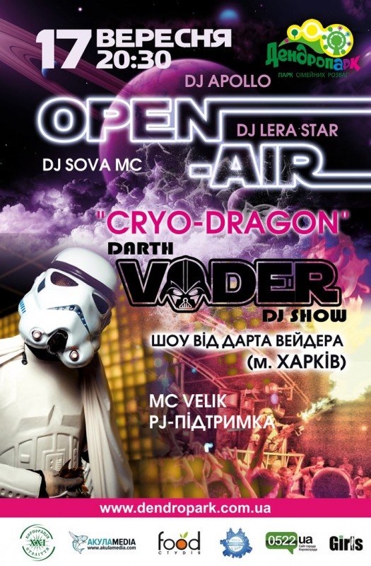 "Cryo-Dragon" Шоу от Дарта Вейдера. Вогнемети та холодний дим на відстань до 7 метрів - лише найкраще для найкращої публіки Дендропарку!