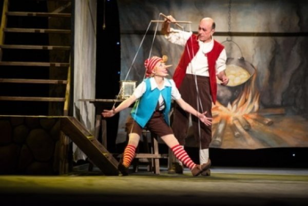 «Яскраве світло заливає сцену. На ній театральні костюми, перуки, завіси… Це театр. Все це чекає на вас. Ходімо, друзі! Попереду нас чекають нові пригоди і нові вистави! Нам ще багато треба зробити, а ті, хто нам заважає, нехай залишаться тут», - такими словами Цвіркун і Буратіно закликають вас завітати у диво-театр і за допомогою головного атрибуту – Золотого Ключика - відчинити двері у майбутнє.