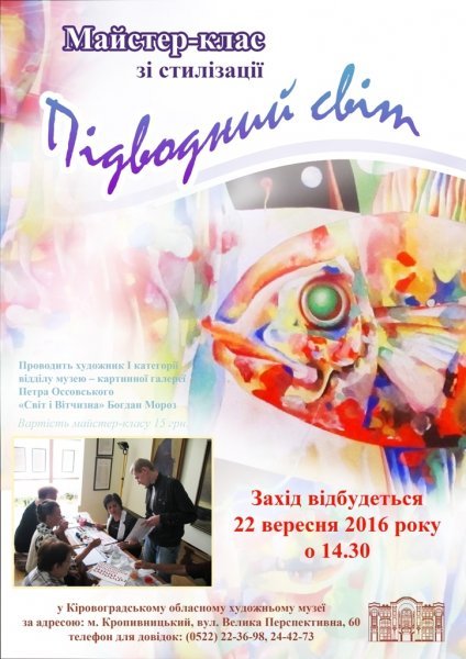 Проводить: Богдан Мороз – художник І категорії відділу обласного художнього музею – картинної галереї Петра Оссовського «Світ і Вітчизна».