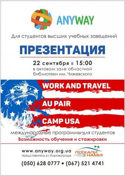 Презентація програм міжнародного стажування та навчання для студентів і молоді - від компанії AnyWay (м. Київ).