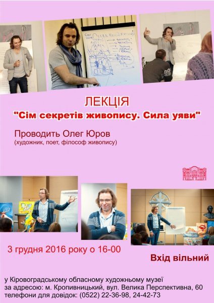 Запрошуємо усіх любителів образотворчого мистецтва на публічну лекцію "Сім секретів живопису Сила уяви", яку проведе Олег Юров (м. Київ) - художник , поет, філософ живопису.