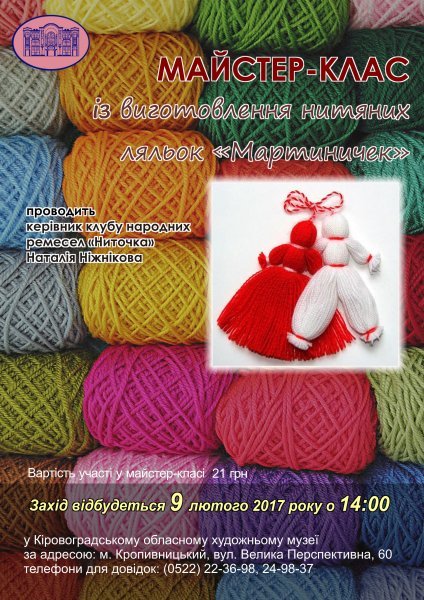 Майстер-клас із виготовлення нитяних ляльок «Мартиничек», на якому всі бажаючі зможуть створити весняний символ – оберіг.
