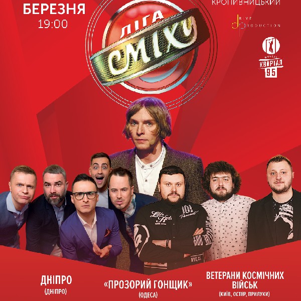 Справжні чемпіони найрентинговішого гумористичного шоу на телебаченні «Ліга Сміху»: Команди «Прозрачний Гонщик», «Дніпро» та «Ветерани космічних військ».