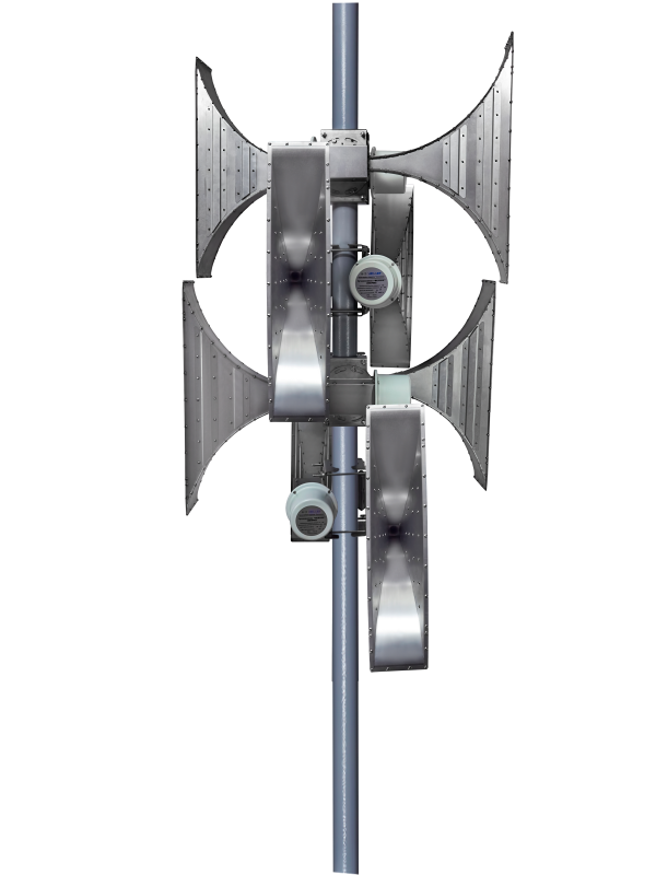 Завдяки великому куту звукового випромінювання у горизонтальній площині три гучномовці розвернуті під кутом в 120 градусів, один відносно одного, забезпечують дальність передачі звукового повідомлення до 1 кілометра в кожний бік (за умови зовнішнього шумового забруднення не вище 50 Дб).