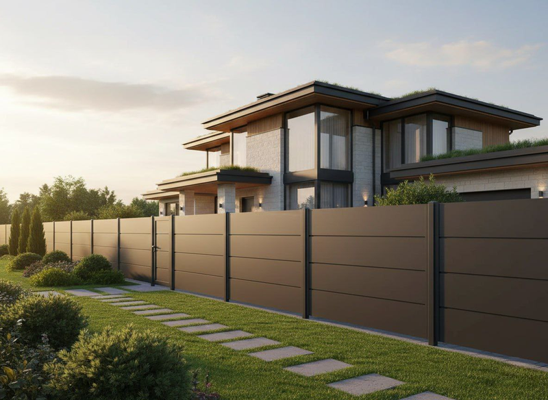 Серед усіх доступних рішень саме сталеві системи закритого формату демонструють найбільшу універсальність. Вони однаково доречні для приватних будинків, дуплексів і котеджних містечок з єдиною стилістикою забудови. Модульні паркани PANEL не конфліктують з сучасною архітектурою, а працюють з нею в одному візуальному полі. Відсутність декоративного перевантаження дозволяє зосередитися на пропорціях і матеріалах, що відповідає сучасному підходу до формування житлового середовища.