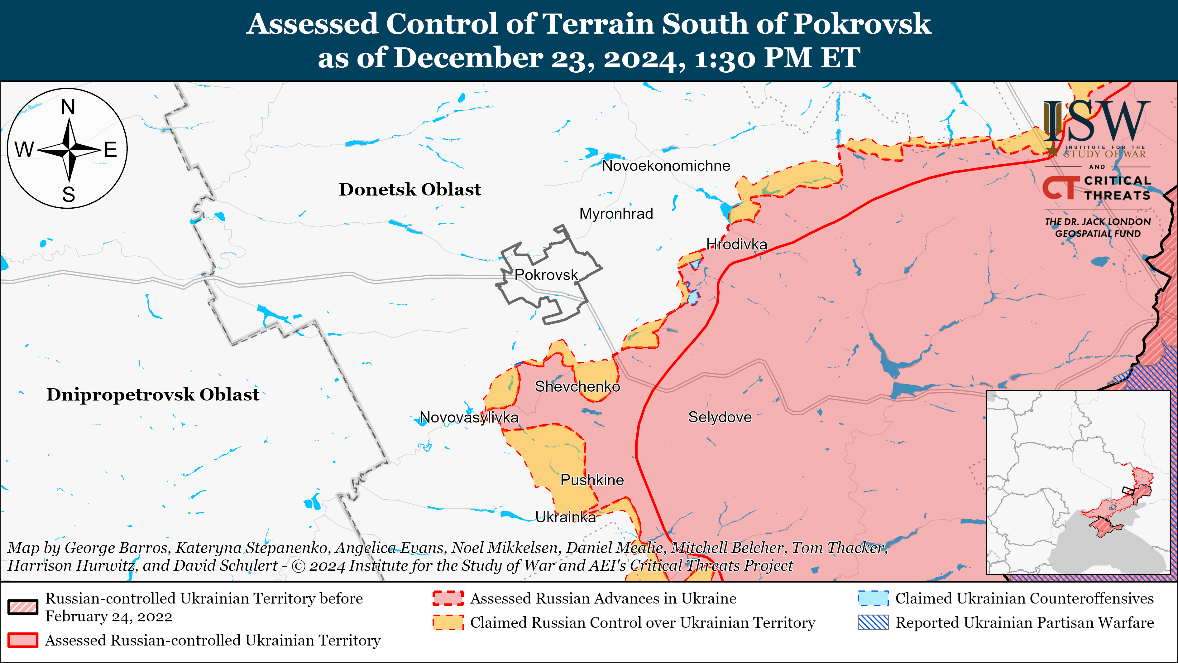 За даними геолокаційних знімків, якими володіє ISW, російські війська перебувають у межах 10 кілометрів від адміністративного кордону Донецької та Дніпропетровської областей.