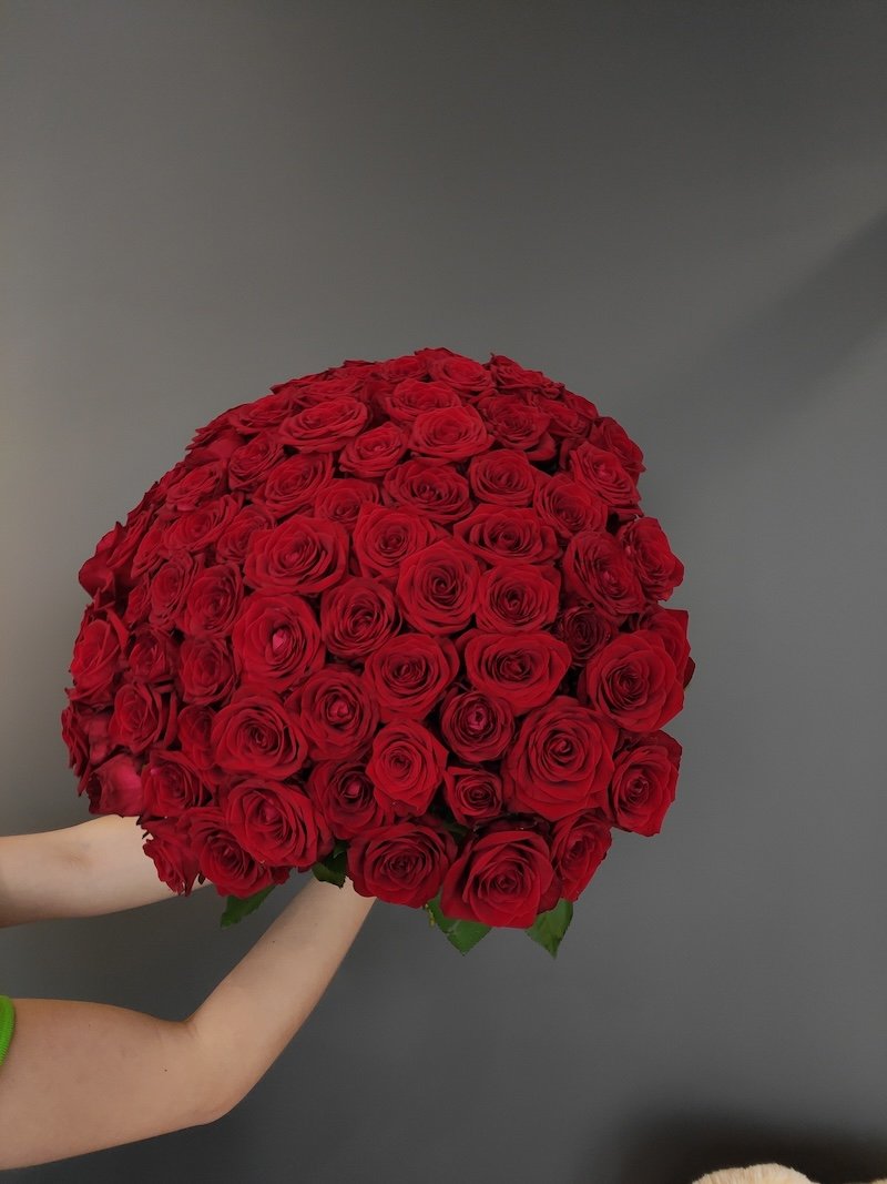 Моно-букет — це чистота стилю, коли весь акцент зосереджений на кольорі та формі квітів. Особливо вражають букети з 21 квітки, у яких розкривається глибина кольору та величність троянд.