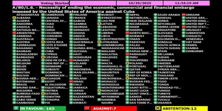 Сьогодні Україна проголосувала проти резолюції Генеральної Асамблеї ООН «Необхідність припинення американської блокади Куби». Цей крок не є раптовим. І він має серйозні підстави, повідомив міністр МЗС Андрій Сибіга.. «Ми пам'ятаємо побажання кубинського президента "успіхів" путіну в його агресивній війні проти України. Ми його добре чули. Цього року ми вирішили закрити наше посольство в Гавані і знизити рівень наших дипломатичних відносин. Наш голос не спр...